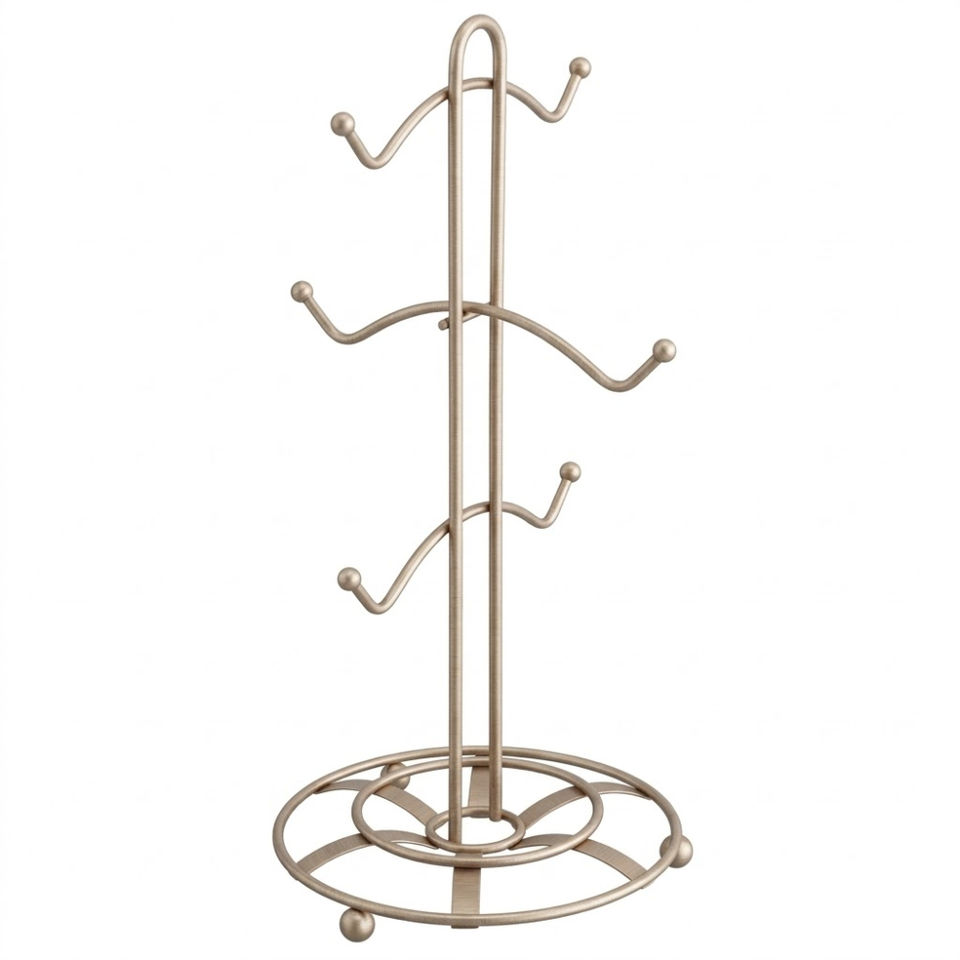 Support à tasses élégant et moderne en métal avec 6 crochets, finition dorée premium, support de comptoir écologique, organisateur de rangement de cuisine