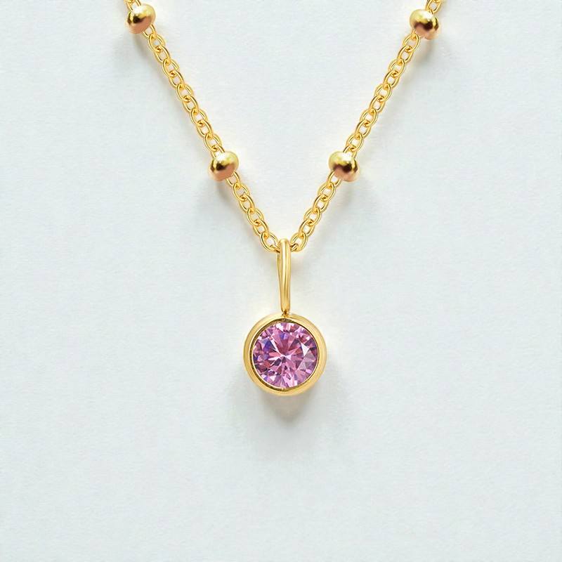 Elegant Minimalist 18K Gold Plated Pink Quartz Gemstone Pendant Necklace Customizable Women's Fashion Jewelry for Gift