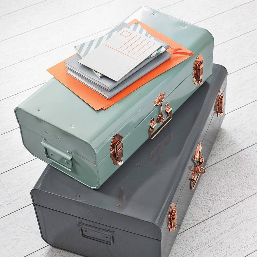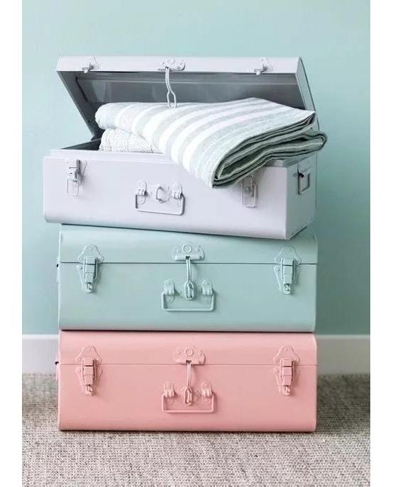 Coffre de rangement élégant en acier à motifs menthe avec serrures dorées pour une organisation élégante de la maison