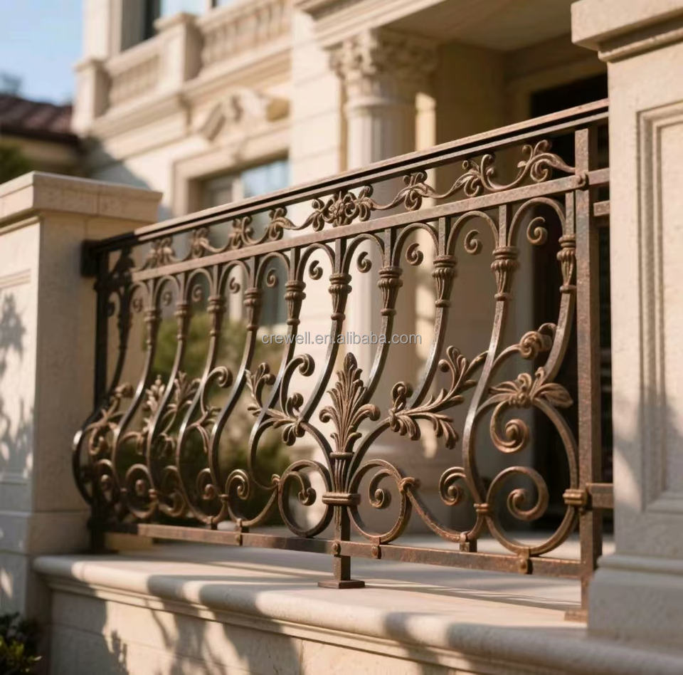 Rampe d'escalier intérieure moderne et élégante, personnalisée pour balcon, avec design en fer forgé et acier inoxydable