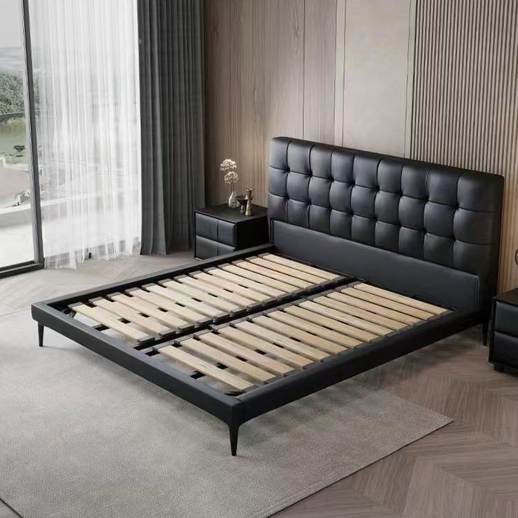 Elegant Modern Light Luxury Wooden Furniture Microfiber Leather Stylish Solid Wood Frame Bed