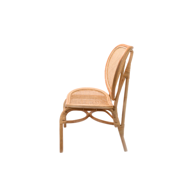 Chaise en rotin élégante et moderne, cadre poli, assise et dossier en cuir, finition mate, confortable et stylée pour le salon