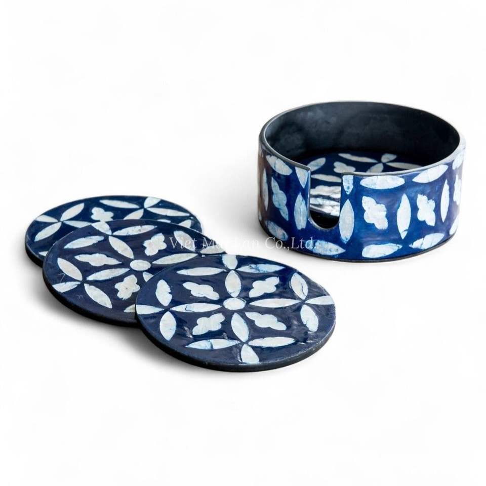 Elegant Mother of Pearl Coaster Set with Mother of Pearl Storage Box for Coaster Storage and Coffee Table Decoration