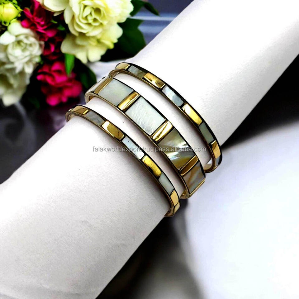 Elegant Mother of Pearl Golden Bracelet Lightweight Shell Bangle with Secure Clasp by Falak World Export