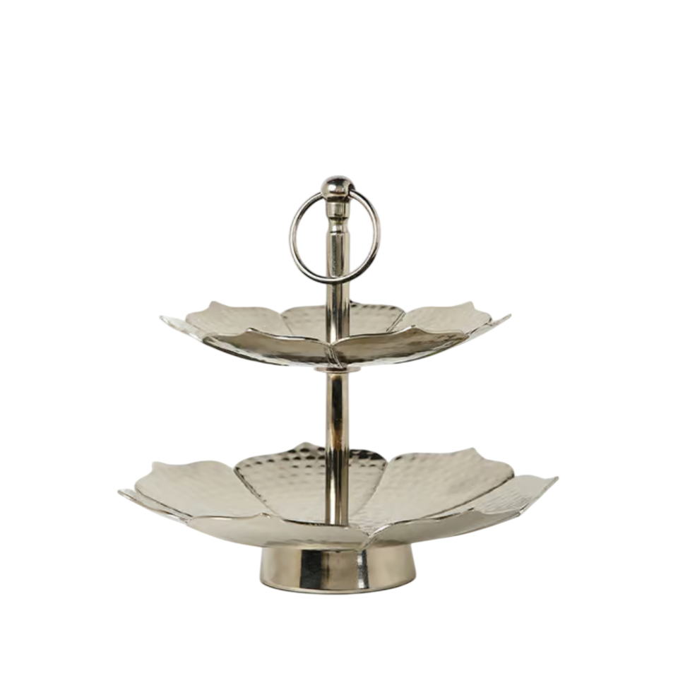 Élégant support à gâteau en métal argenté en forme de cœur à deux niveaux, multifonctionnel, pour mariages, fêtes, célébrations ou usage domestique quotidien