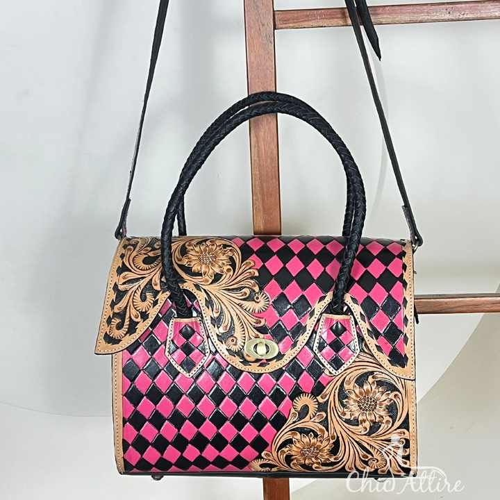 Nom du produit:Sac à main en cuir à carreaux travaillé à la main