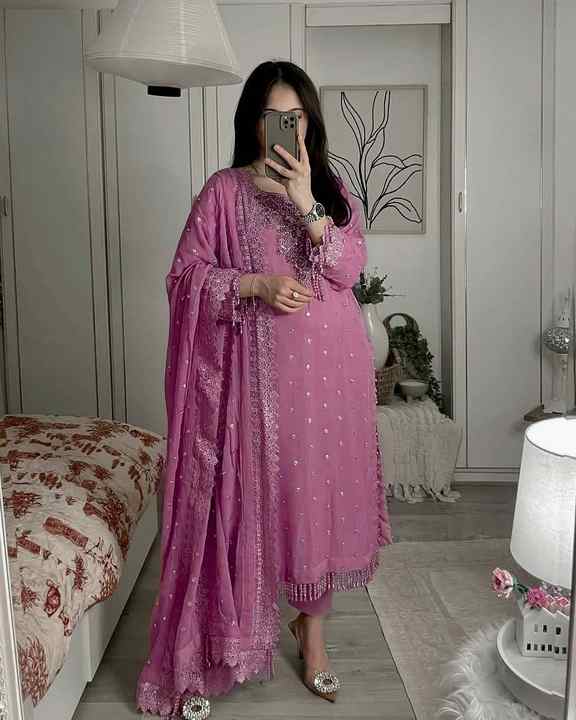Dupatta Work:sequins & zari Embroidery work with *fancy lace work* on borders