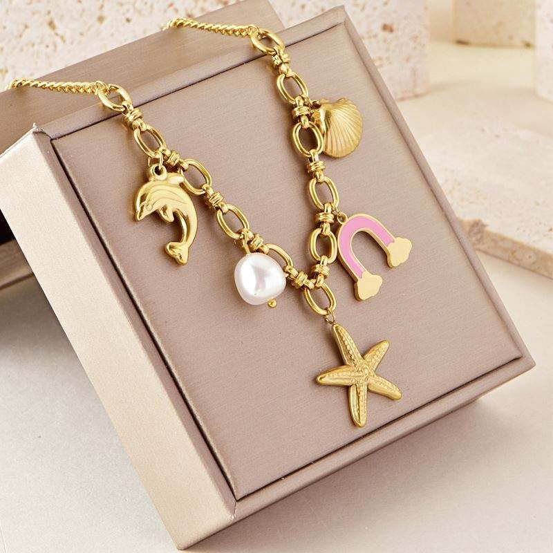 Élégant Océan Coquillage Étoile de Mer Charme Surfer Fille Collier Initial Collier Boho Bijoux Collier pour Femmes Avec Shell Pendentifs