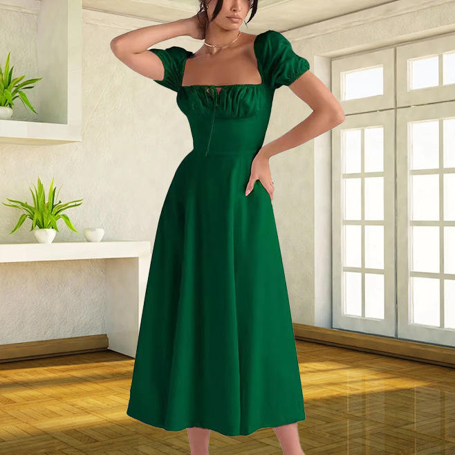 Elegant Office Lady Chic Women's Sequined Robe Breathable Knit Maxi Dress O-Neck Short Sleeves Natural Waistline for Autumn