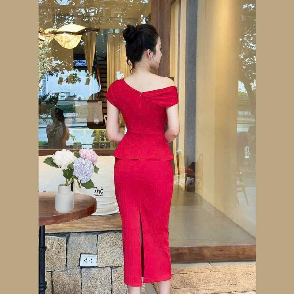 Elegant Office Outfit with Pencil Skirt and Off-Shoulder Design - Perfect for Combining Professionalism and Femininity