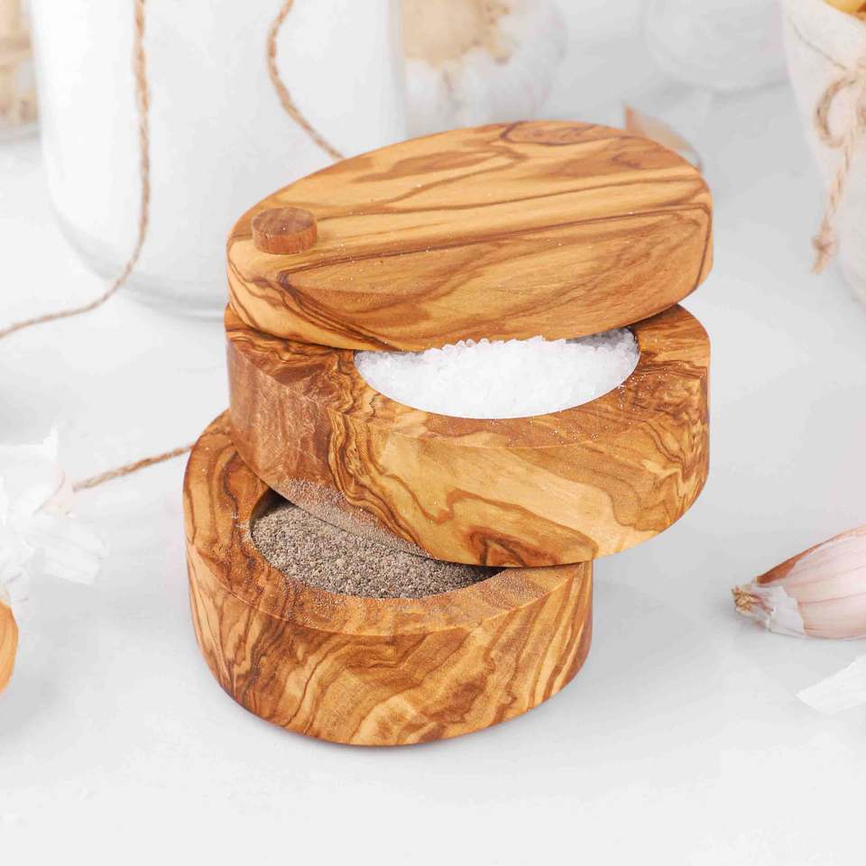 Elegant ArtisRaw Olive Wood Through-Carved Salt & Pepper Holder Natural Handmade Table Accessories for Home & Restaurant Use
