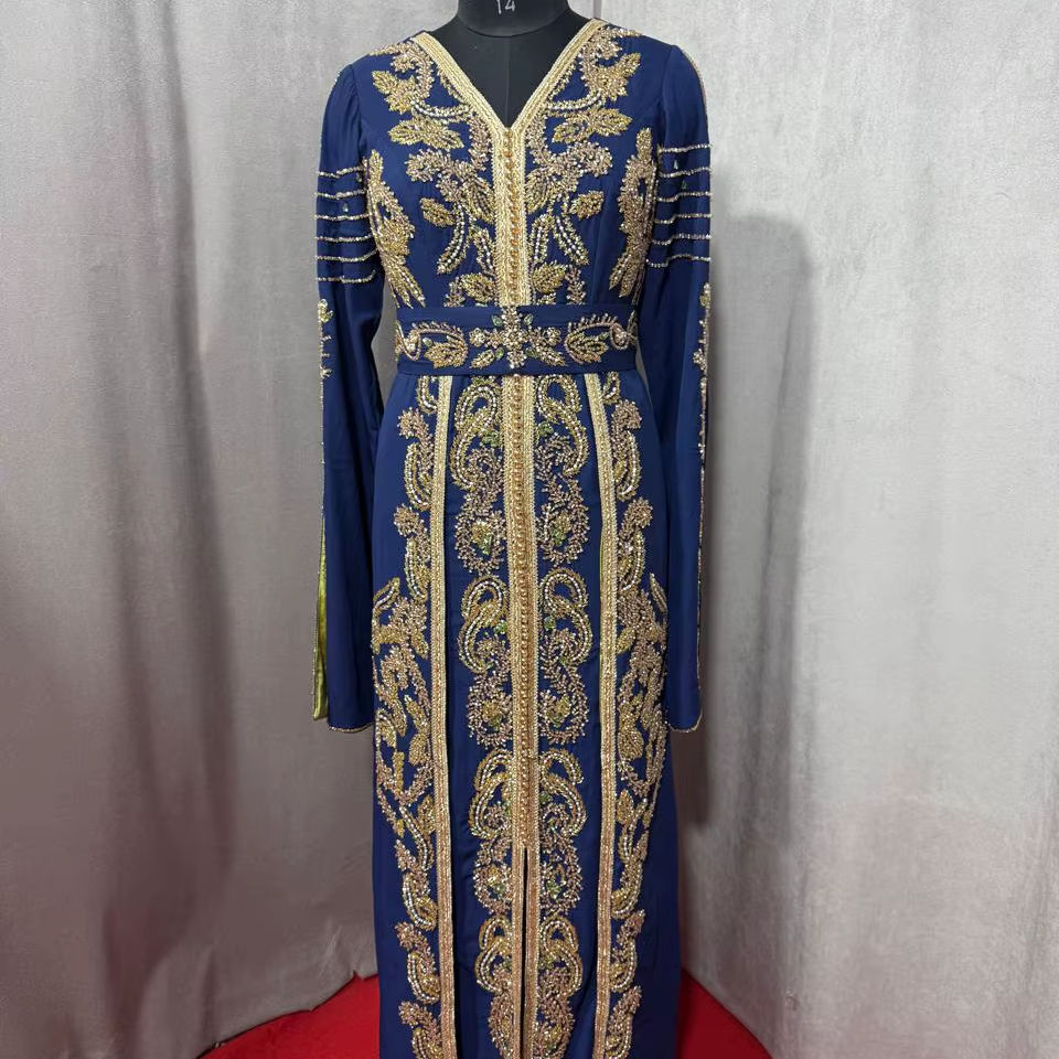 Robe Kaftan élégante pour les fêtes, brodée à la main avec des perles, avec voile, dernière collection de vêtements islamiques modestes pour mariage