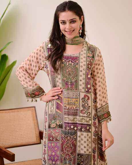 Nom du produit:Ensemble droit de pantalon Kurti Dupatta