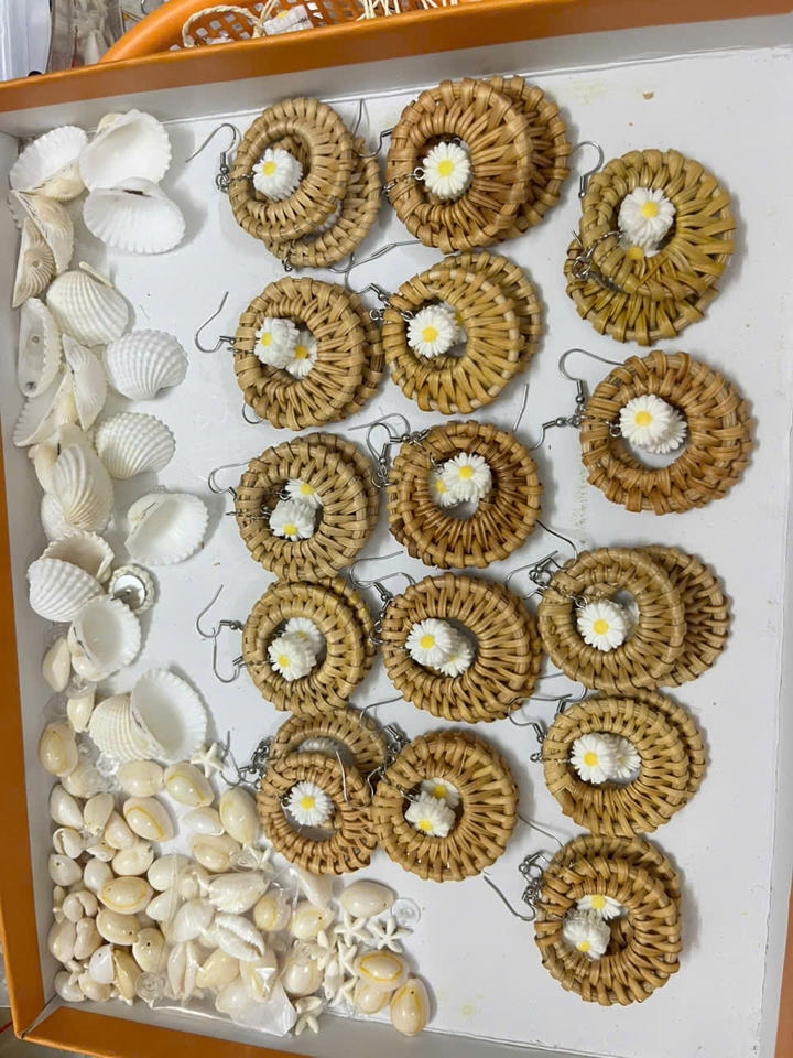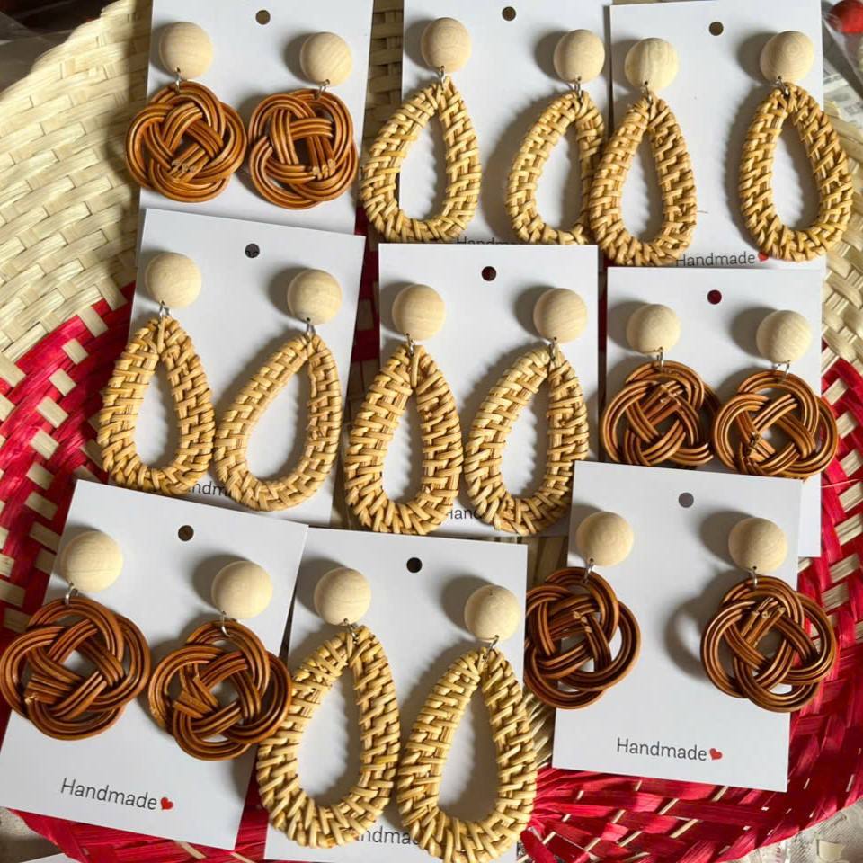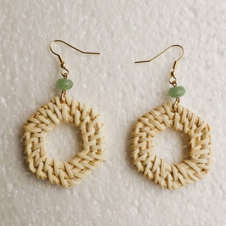 Nom ou mots:Boucles d'oreilles en rotin tissé à la main