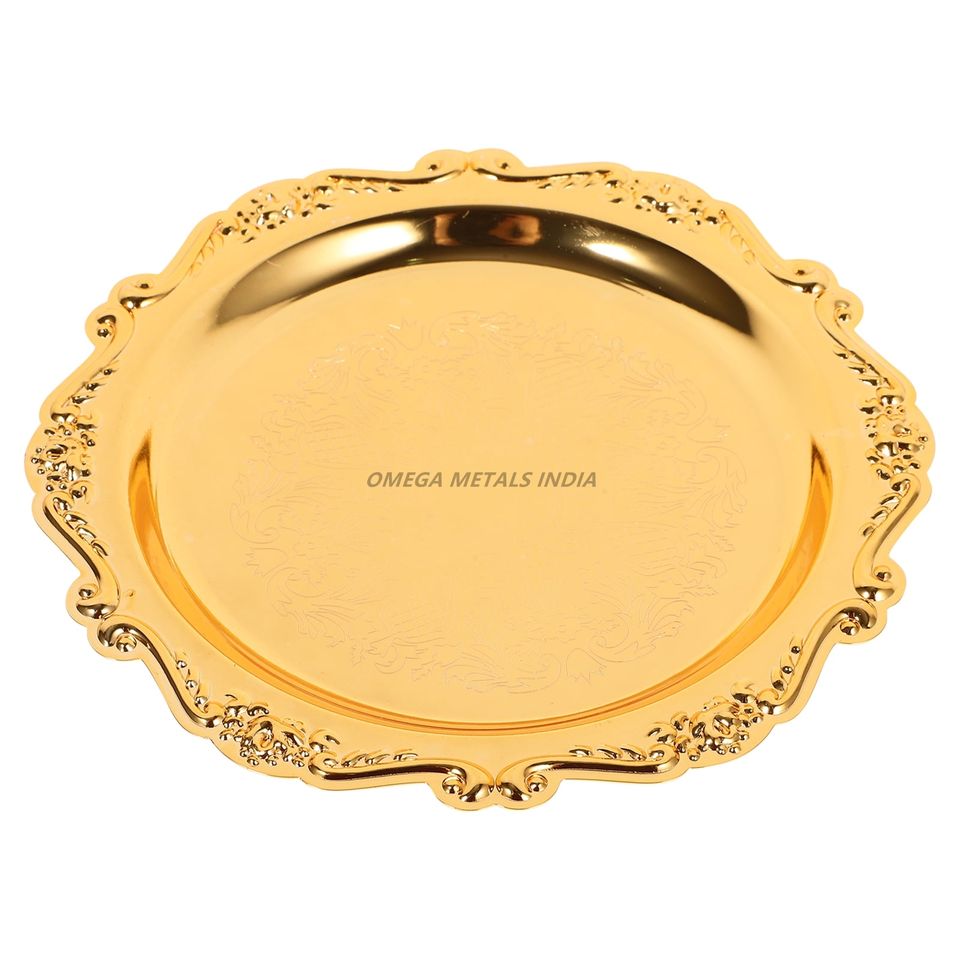 Plateau de service rectangulaire en or élégant avec bords décoratifs et design floral parfait pour le service élégant et la décoration intérieure