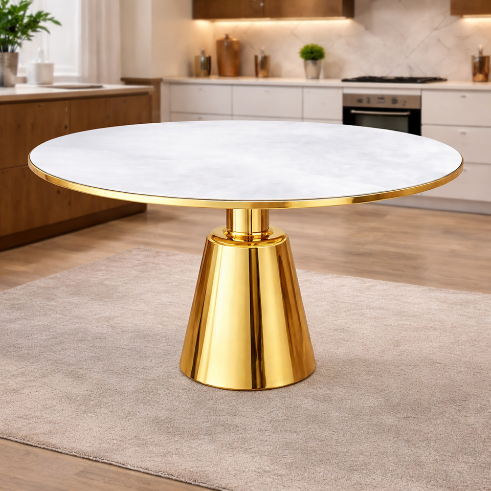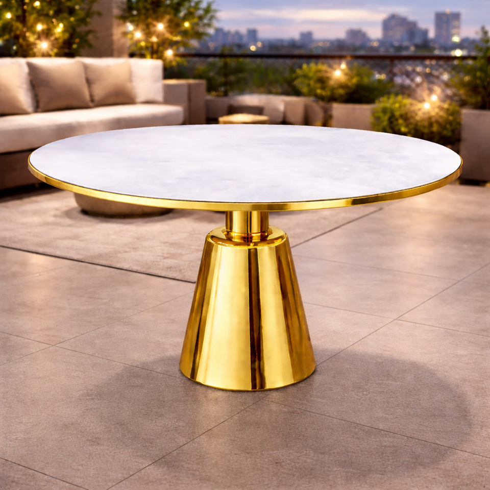 Table basse élégante et durable avec plateau rond en métal et base en métal doré, mobilier moderne de luxe pour la maison