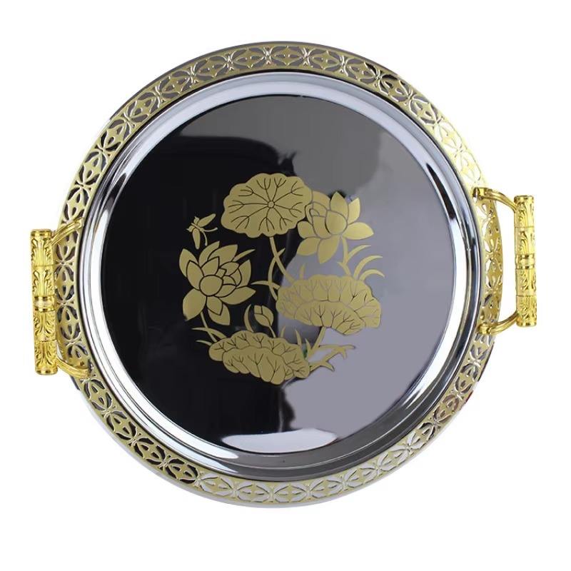 Plateau de service en acier inoxydable de forme arrondie élégant Designer classique Plateau de fruits fait à la main incroyable Plateau élégant et décoratif