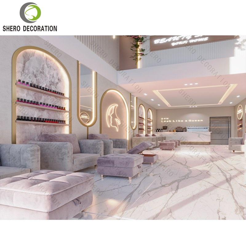 Utilisation:Mobilier de salon de manucure et cosmétique, comptoir d'accueil avec logo et éclairage