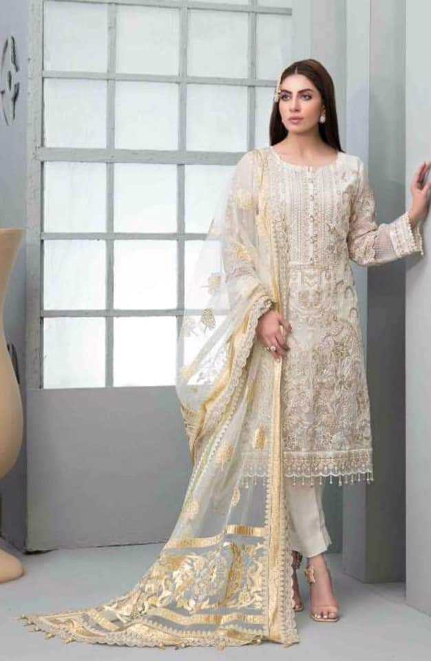 Chiffon brodé à l'avant pour femmes, en mousseline Semi Pure, manches, à l'arrière, Organza, Dubatta, élégant
