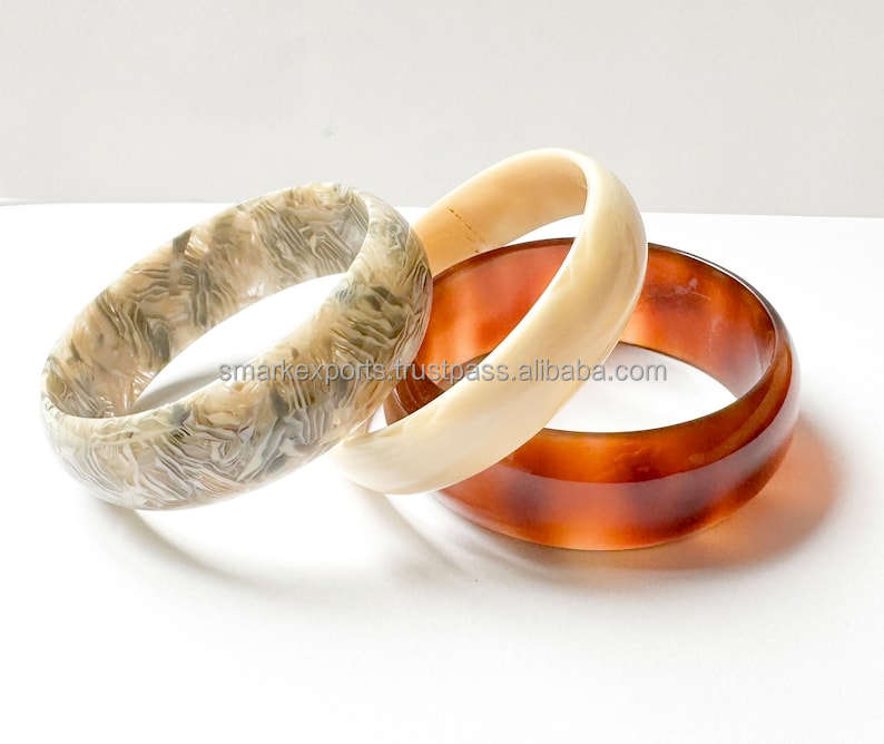 Elegant Set of 3 Resin Bangles in Brown Beige and Amber Tones Fashionable Kada Bracelets for Women and Girls