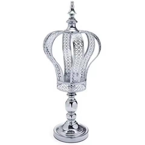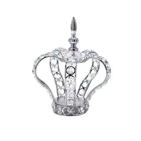 Sculpture de couronne en argent élégante incrustée de pierres brillantes, ornement de table décoratif, centre de table unique de designer