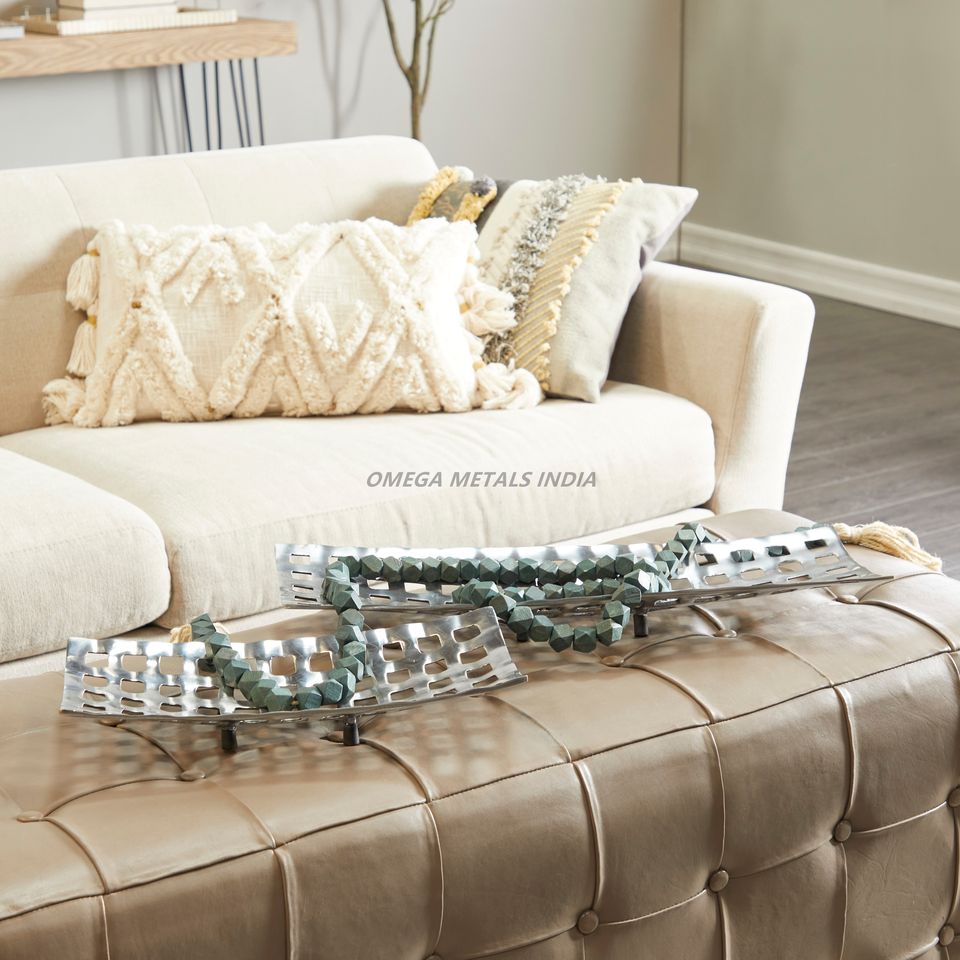 Plateau de service rectangulaire élégant en argent avec base en verre et design moderne, parfait pour les réceptions élégantes et la décoration intérieure