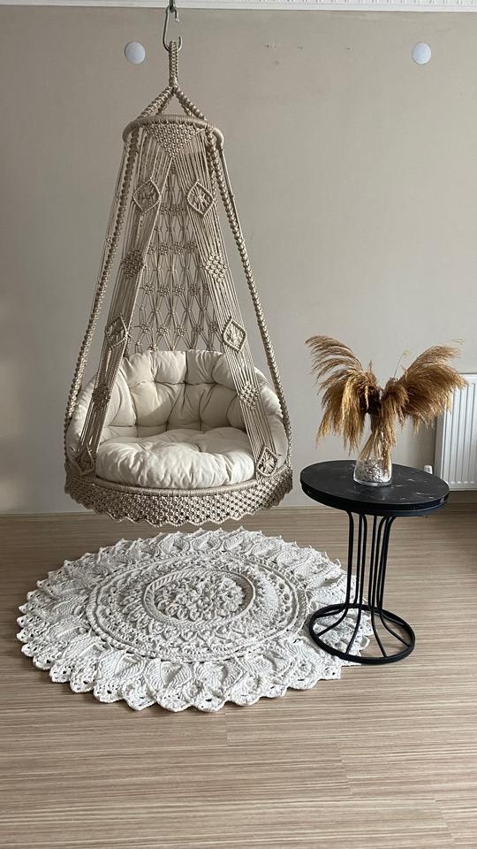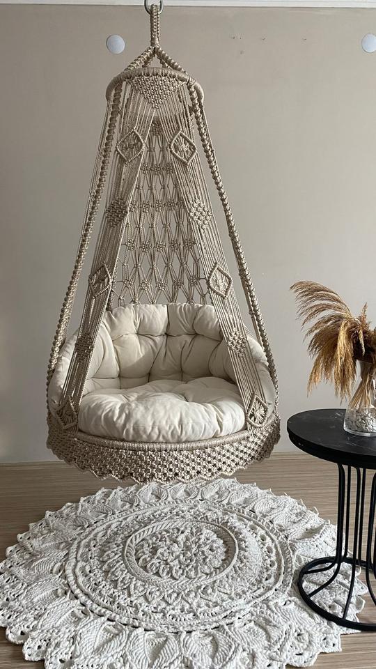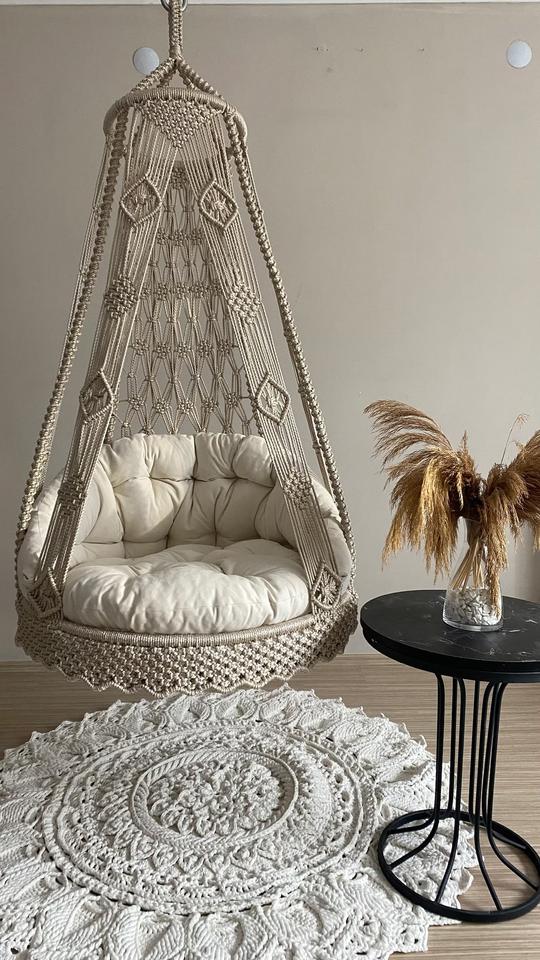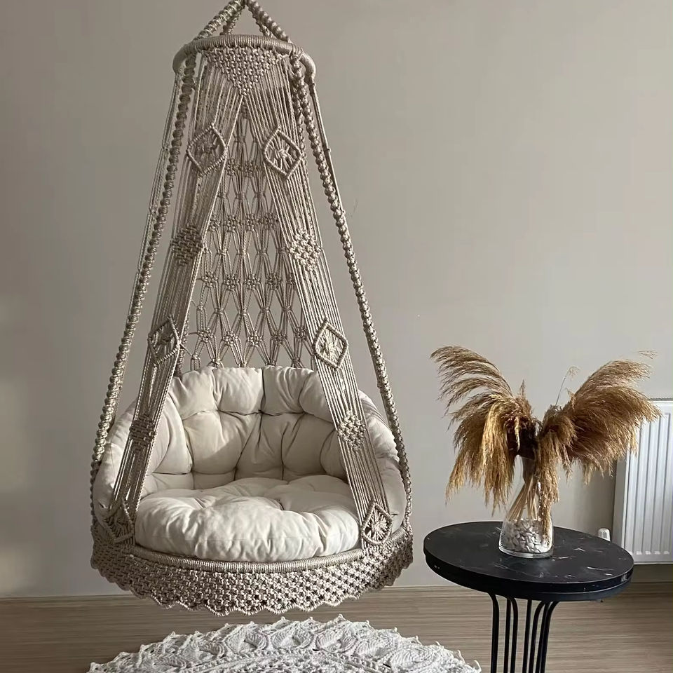 Chaise balançoire suspendue en macramé élégante de style simple pour l'intérieur et l'extérieur de la maison et du jardin.
