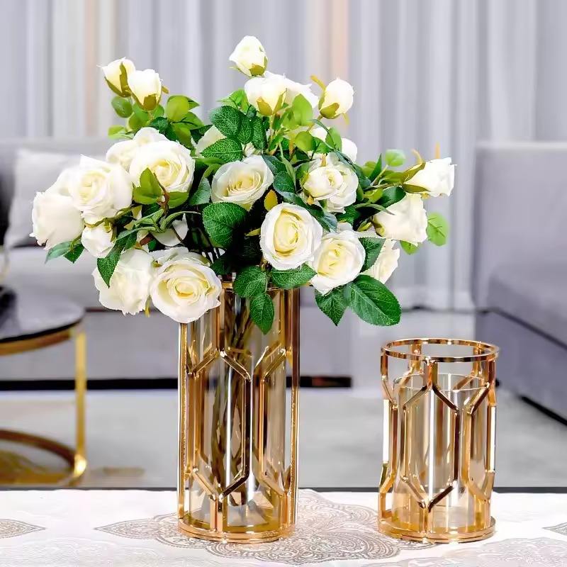 Vase de table élégant de petite taille, finition dorée, adapté à la décoration de table de fête, à l'affichage sur table basse et au style de la pièce, vente en gros en provenance d'Inde