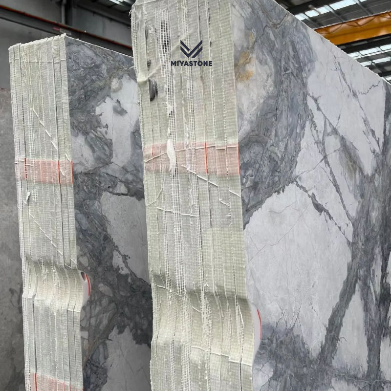 Elégante dalle de marbre blanc neige Design naturel rivière d'hiver marbre rivière froide lilas dalles polies pour hôtel villa revêtement mural