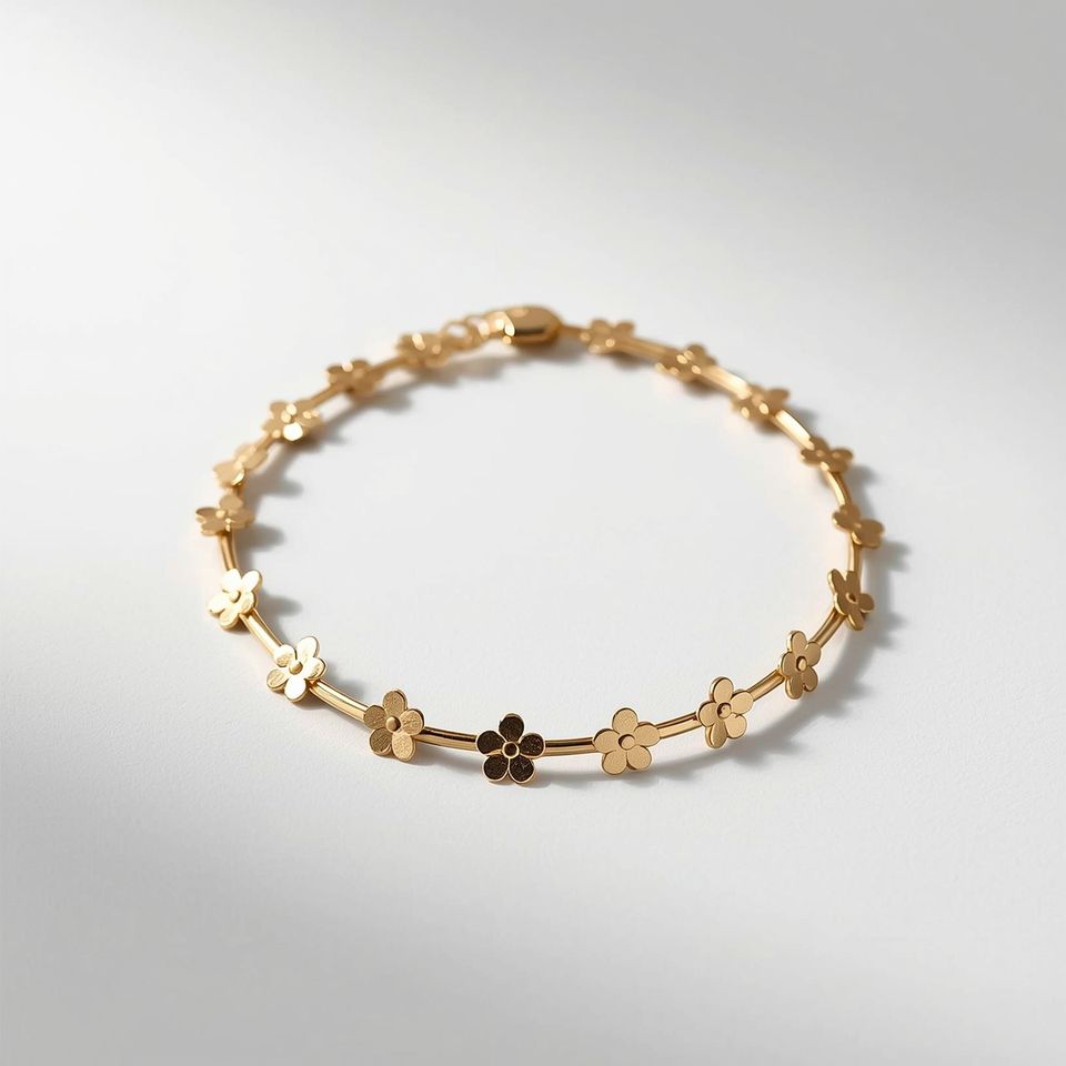 Elegant 14K Yellow Gold Floral Chain Bracelet for Women with Petite Flower Motif GIA Certified Luxury Fine Jewelry