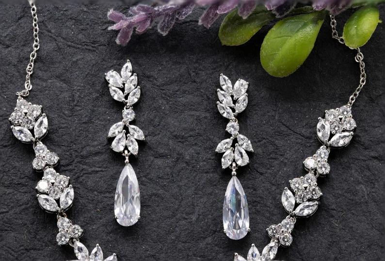 Collier élégant en argent sterling avec diamants cultivés en laboratoire avec boucles d'oreilles Bijoux personnalisés Excellente coupe Cadeau incroyable et unique pour elle