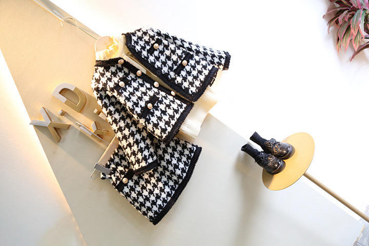 Ensemble veste et jupe à carreaux pour enfants, style élégant, printemps-automne 2022