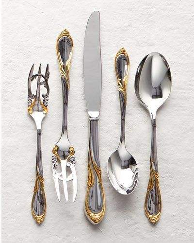 Ensemble de couverts en métal de style élégant pour une mise en scène de table luxueuse, créant une expérience repas raffinée et confortable.