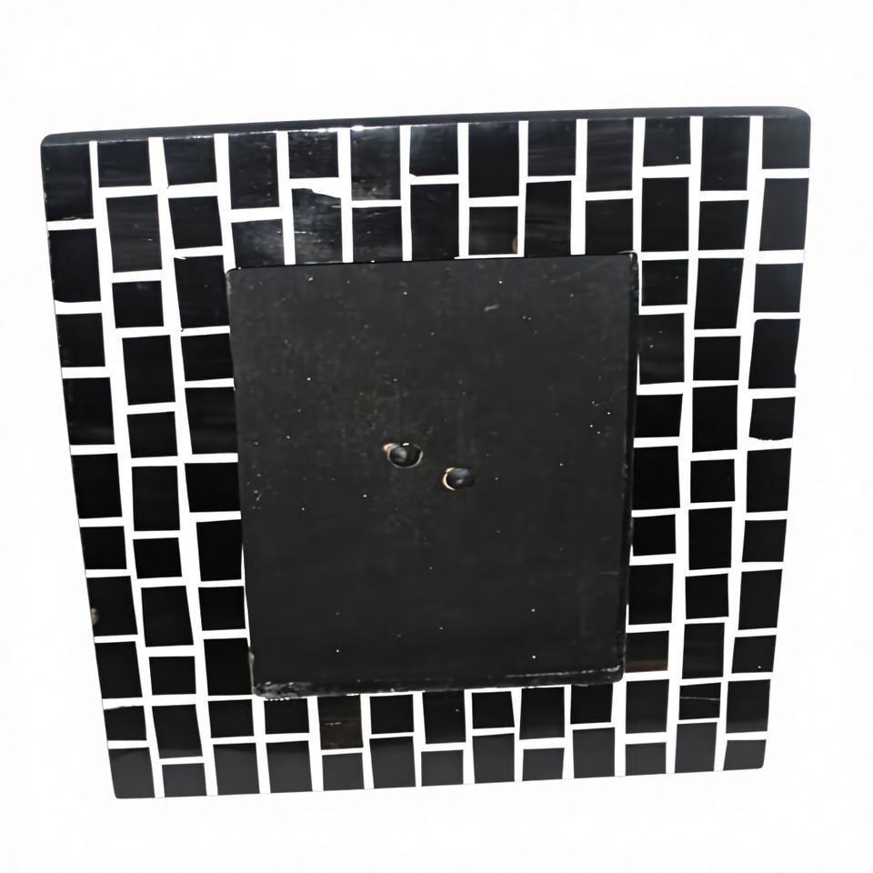 Cadre photo décoratif de luxe en résine, mosaïque noire et blanche artisanale, incrustation d'os, pour bureau ou table.