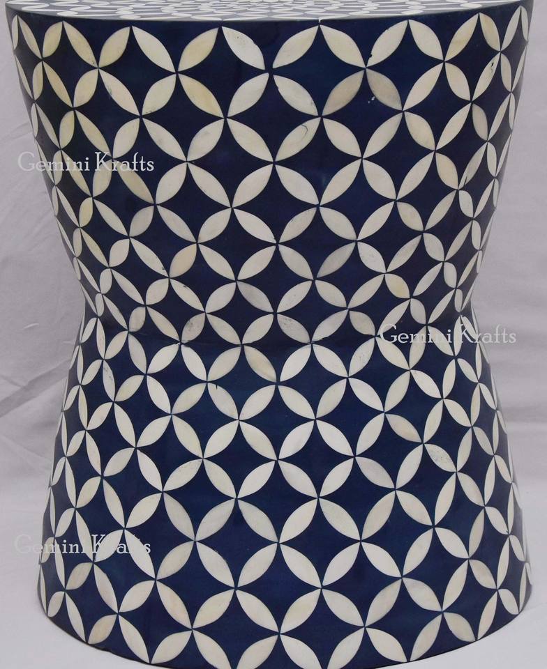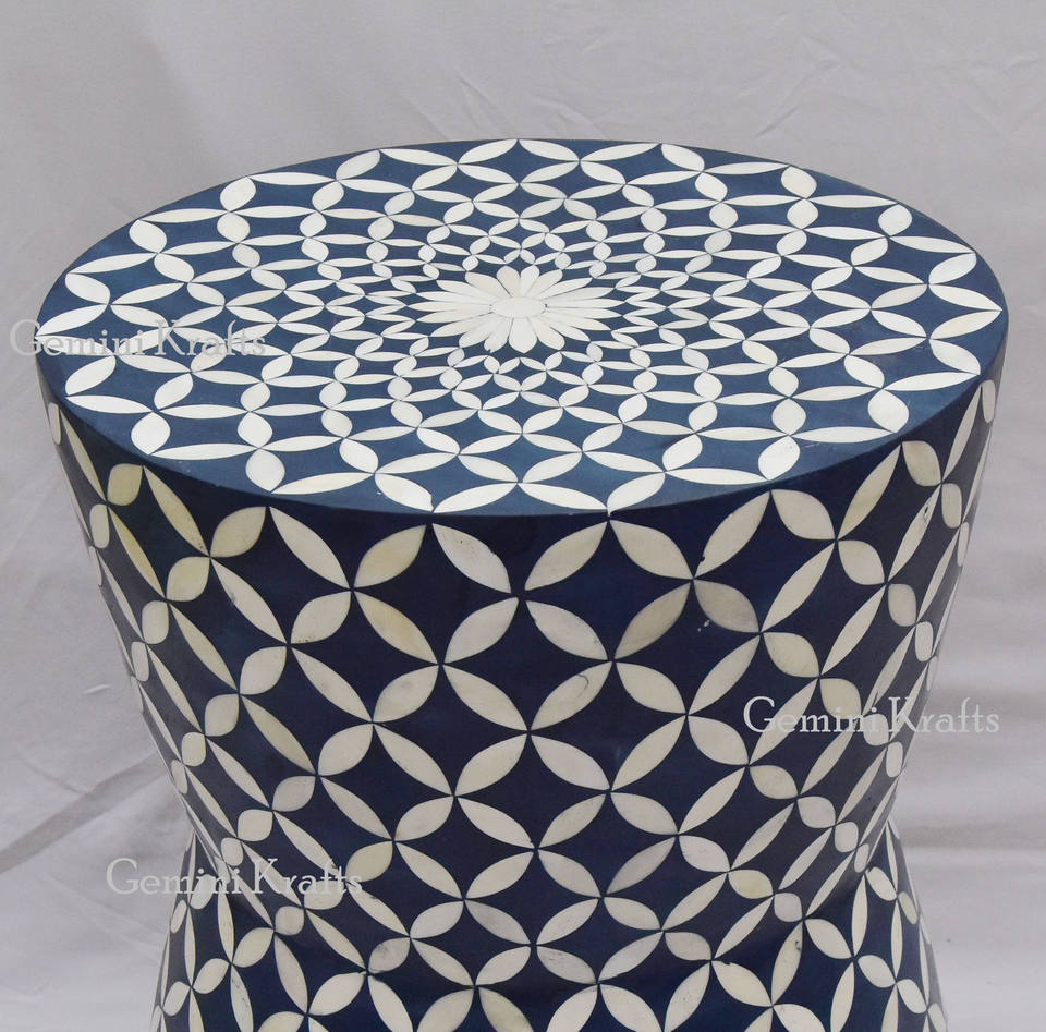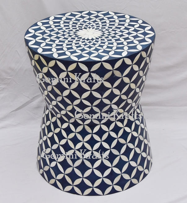Tabouret et pouf traditionnels en incrustation d'os élégants et élégants pour le salon-Gemini Krafts Modèle GKB-01