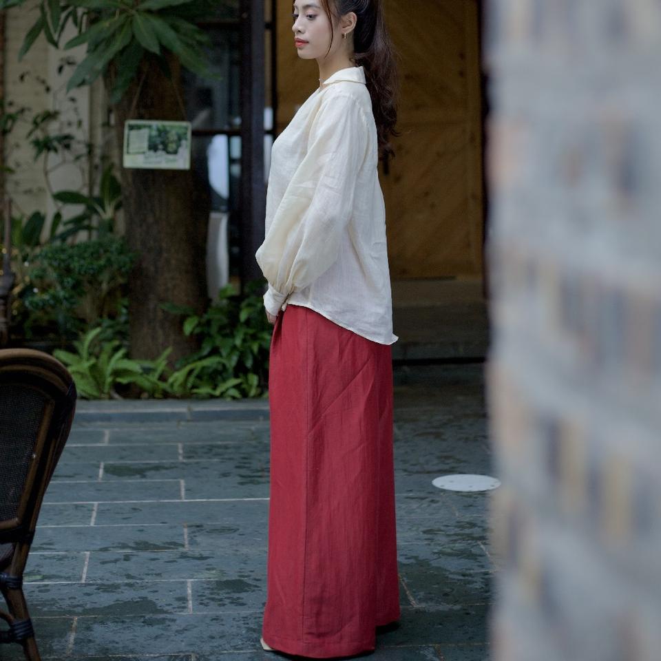 Elegant Stylish Women Blouses 100% Ramie Linen Formal Loose Fit Plaid Design Breathable Woven Weaving Natural Materials