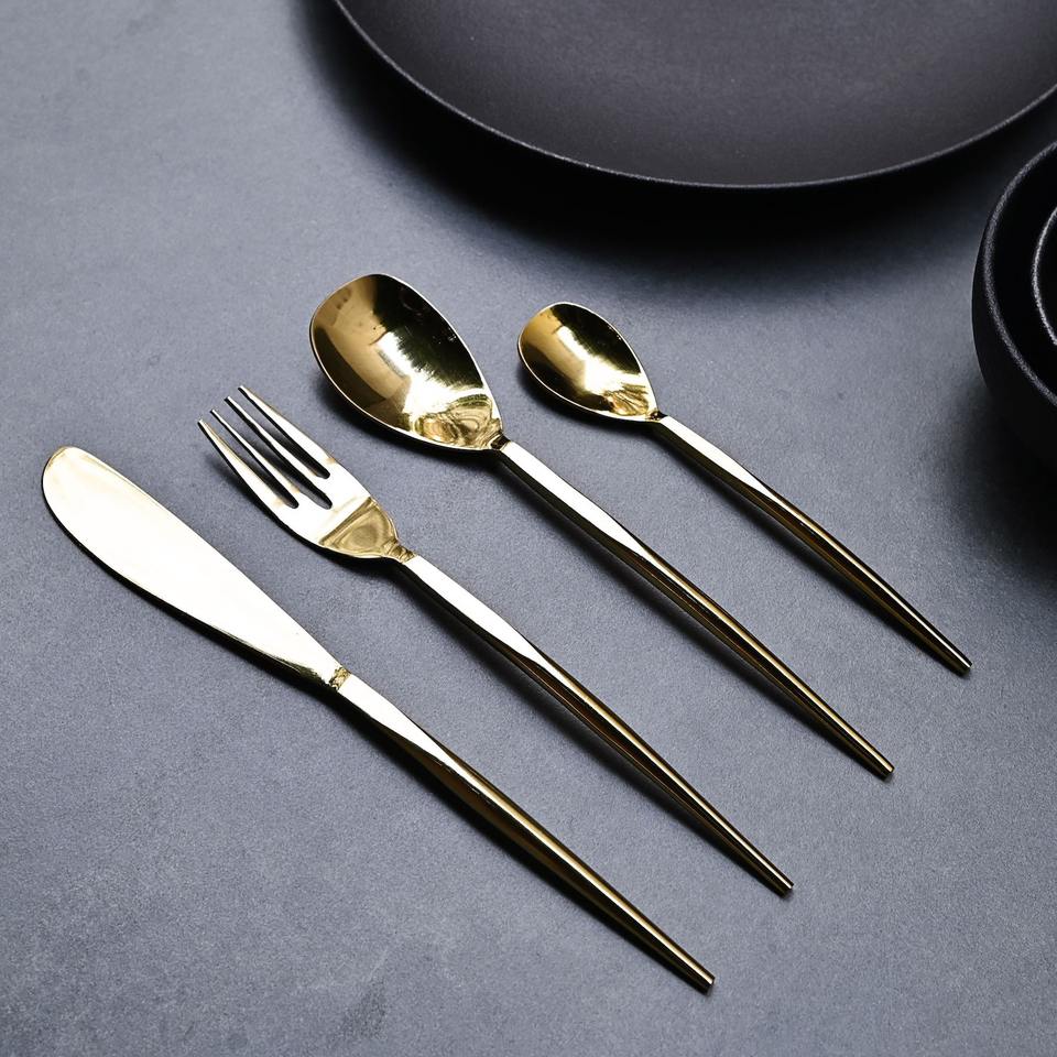 Ensemble de couverts élégants en acier inoxydable, résistant à la rouille, cuillère, fourchette, couteau pour un usage quotidien