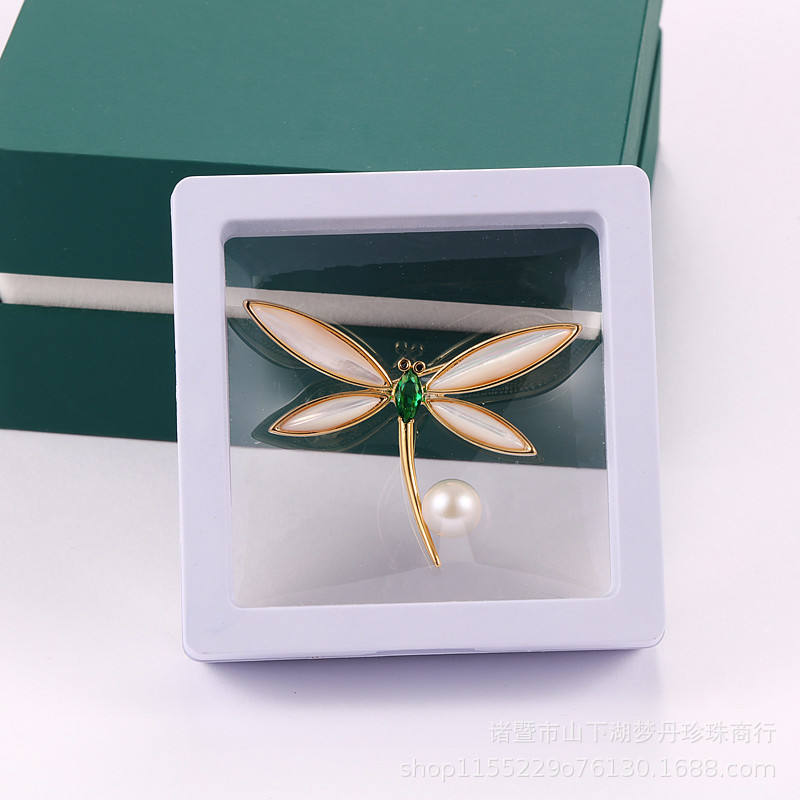 Elegant Temperament Elegant Brooches Freshwater Pearl and Zircon Inlaid with Shell Dragonfly Wholesale Jewelry for Dress Coat
