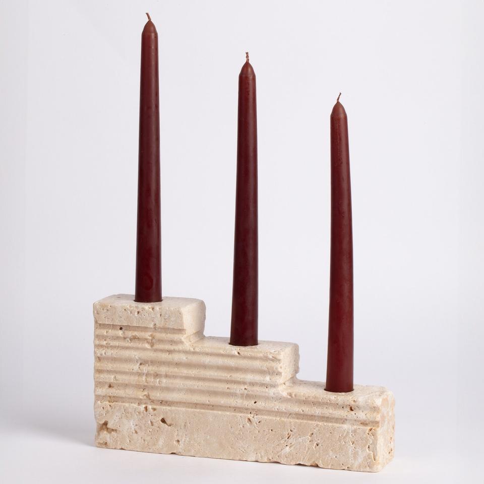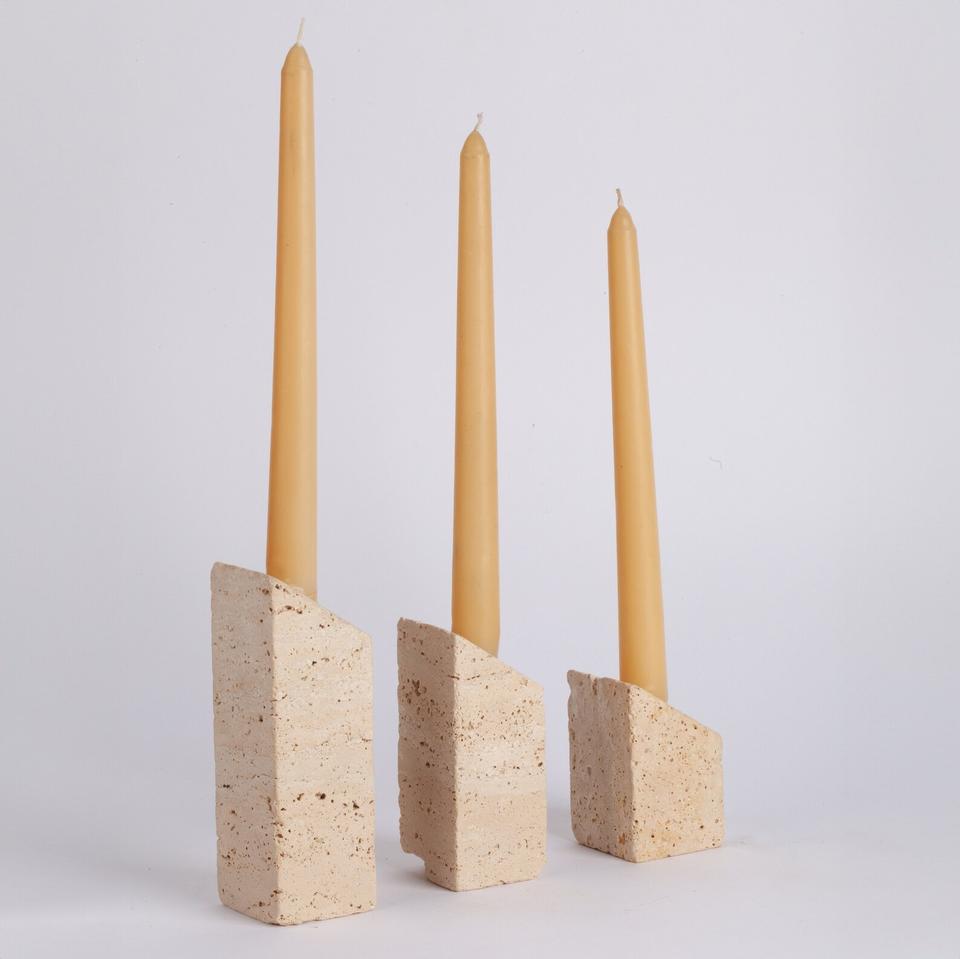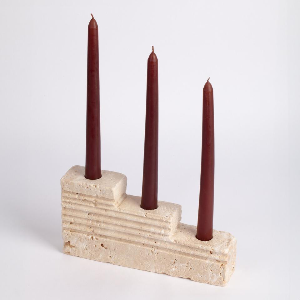Porte-bougie à trois marches en pierre de travertin élégant, fait à la main, décoration moderne avec un design texturé pour un éclairage d'ambiance chaleureux