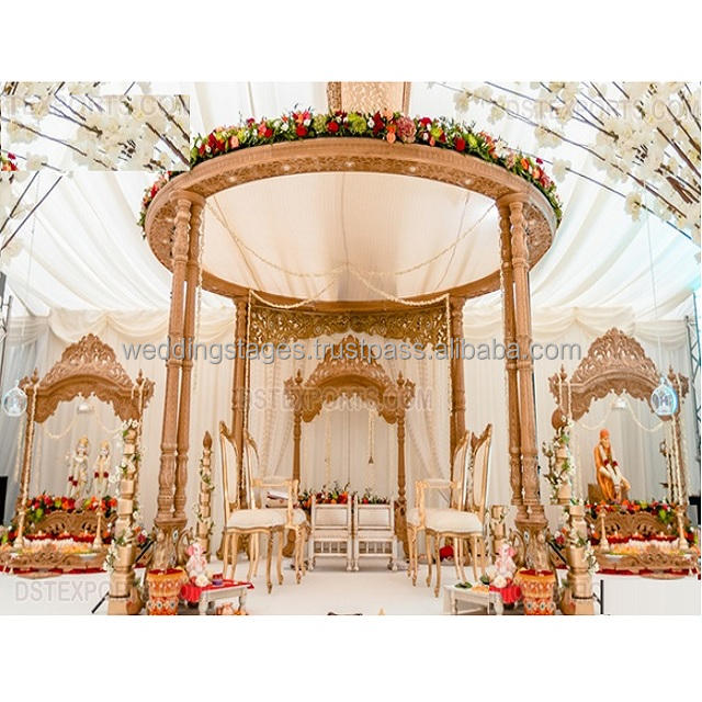Elegant Triple Pillars Wedding Wooden MandapProduct name