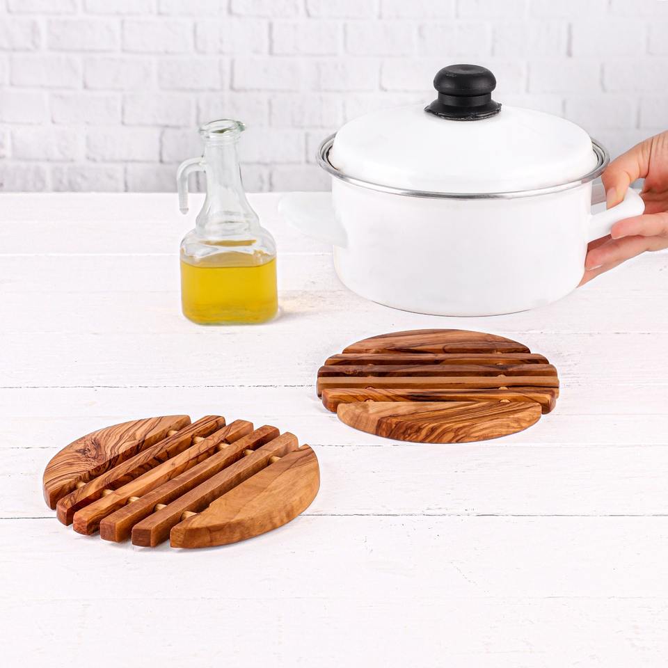 Elegant Tunisian Olive Wood Trivet Durable Round Rustic Carving for Hot Dishes for Kitchen & Dining