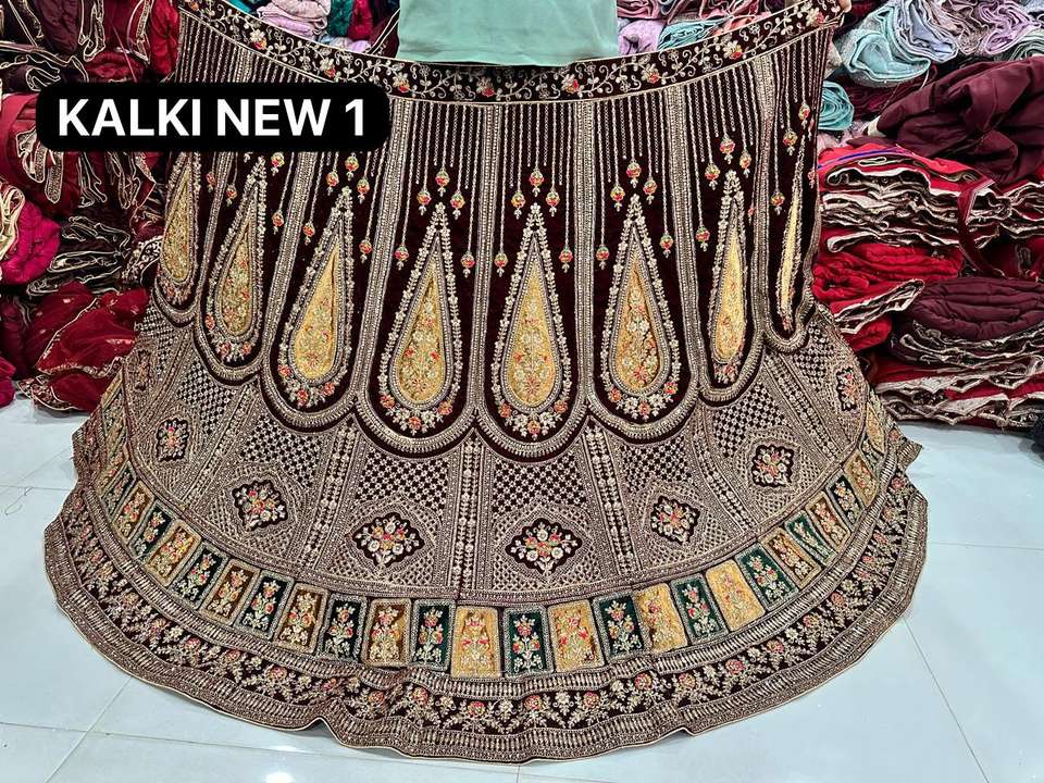 WORK:11000 VELVET LEHENGA HEAVY JARKAN WORK CUT PASTE WORK