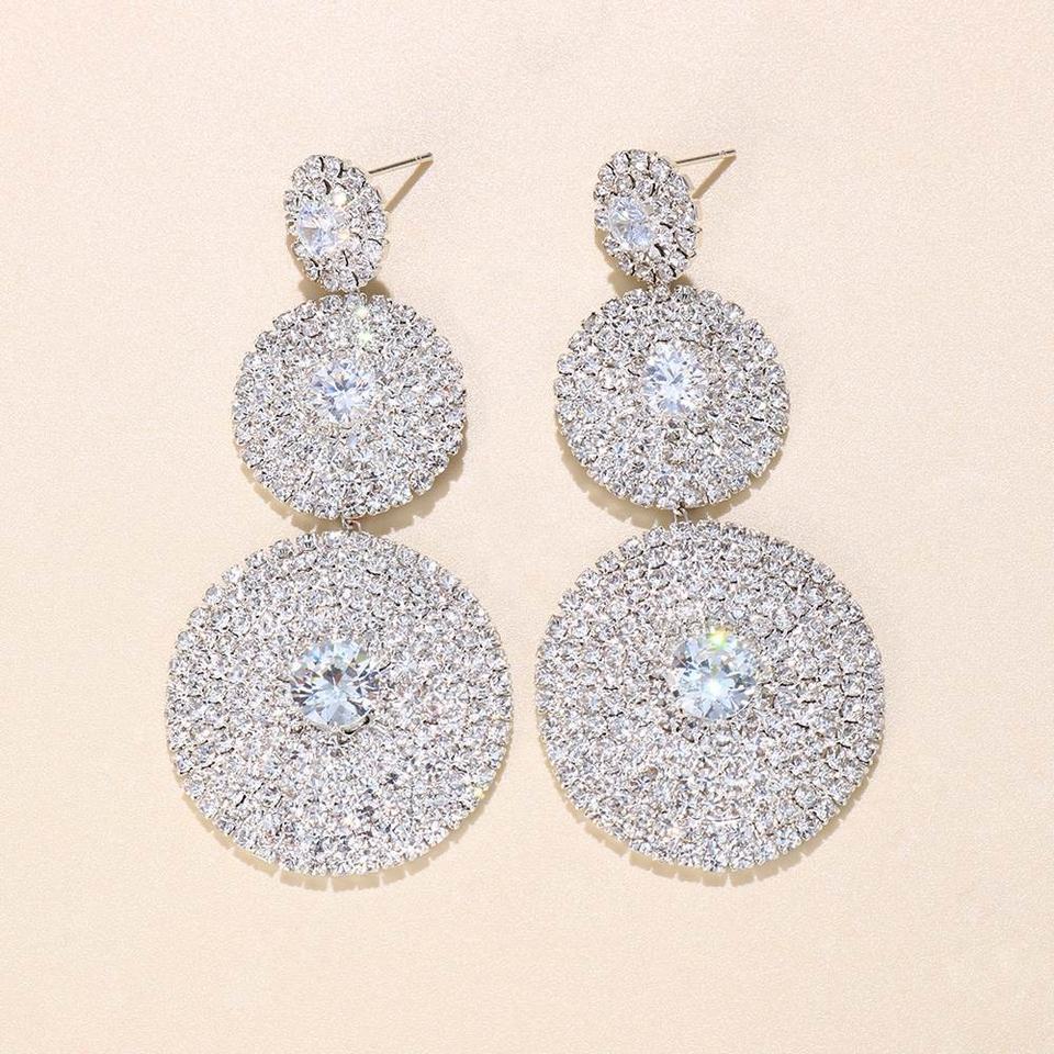 Elegant Versatile Trendy Gold-Plated Crystal Rhinestone-Studded Hoop Earrings Geometric Shaped Long Drop Ball Pattern Blogger
