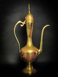 Elegant Vintage Brass Dallah Aftaba with Engraved Arabian Design Coffee & Tea Sets Pitcher