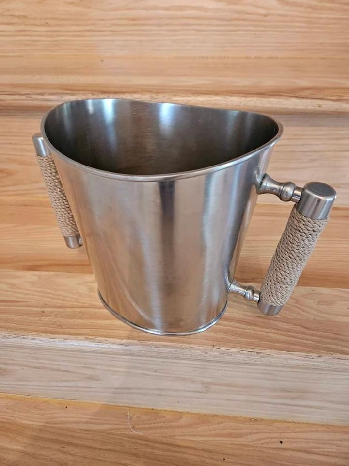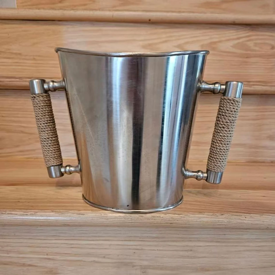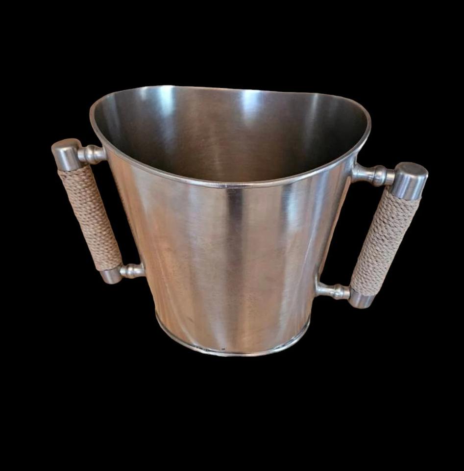 Seau à glace vintage élégant avec poignées en corde, idéal pour la présentation sur table, les réceptions et l'aménagement de salons, provenant d'Inde