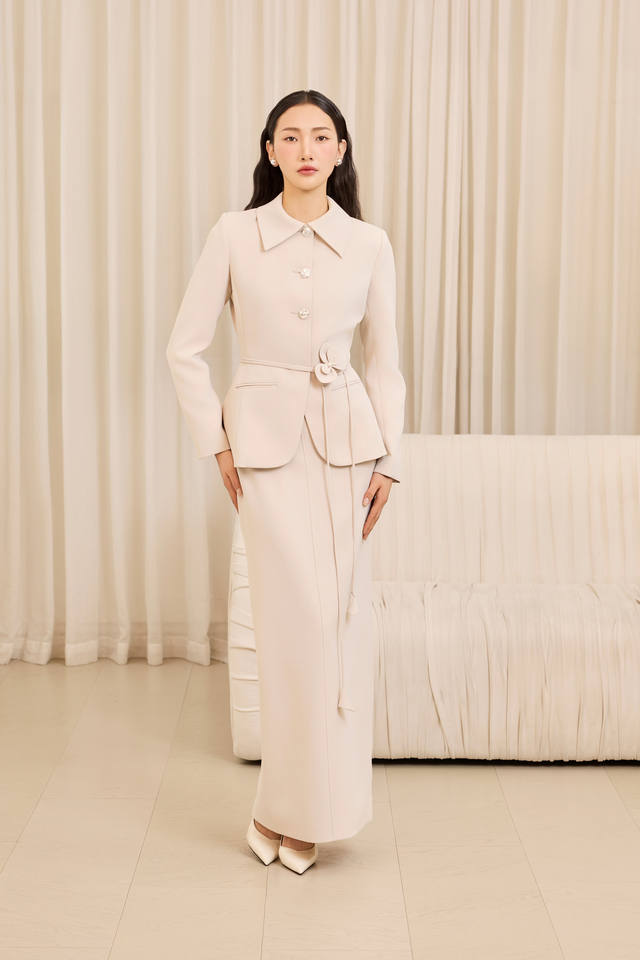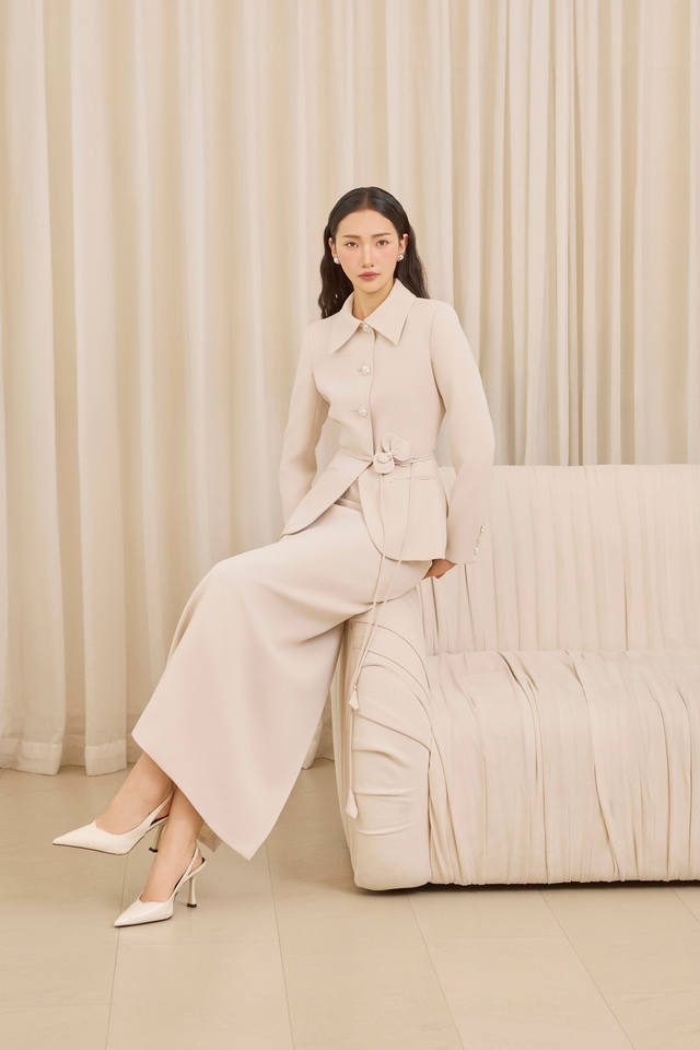 Decoration:Oversized pearl buttons, flap pockets, clean tailoring seams.