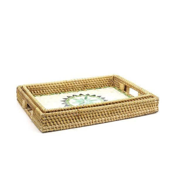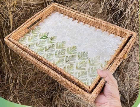 Tapis de cuisson élégant vintage en rotin mini rectangulaire avec poignée, écologique pour la cuisine