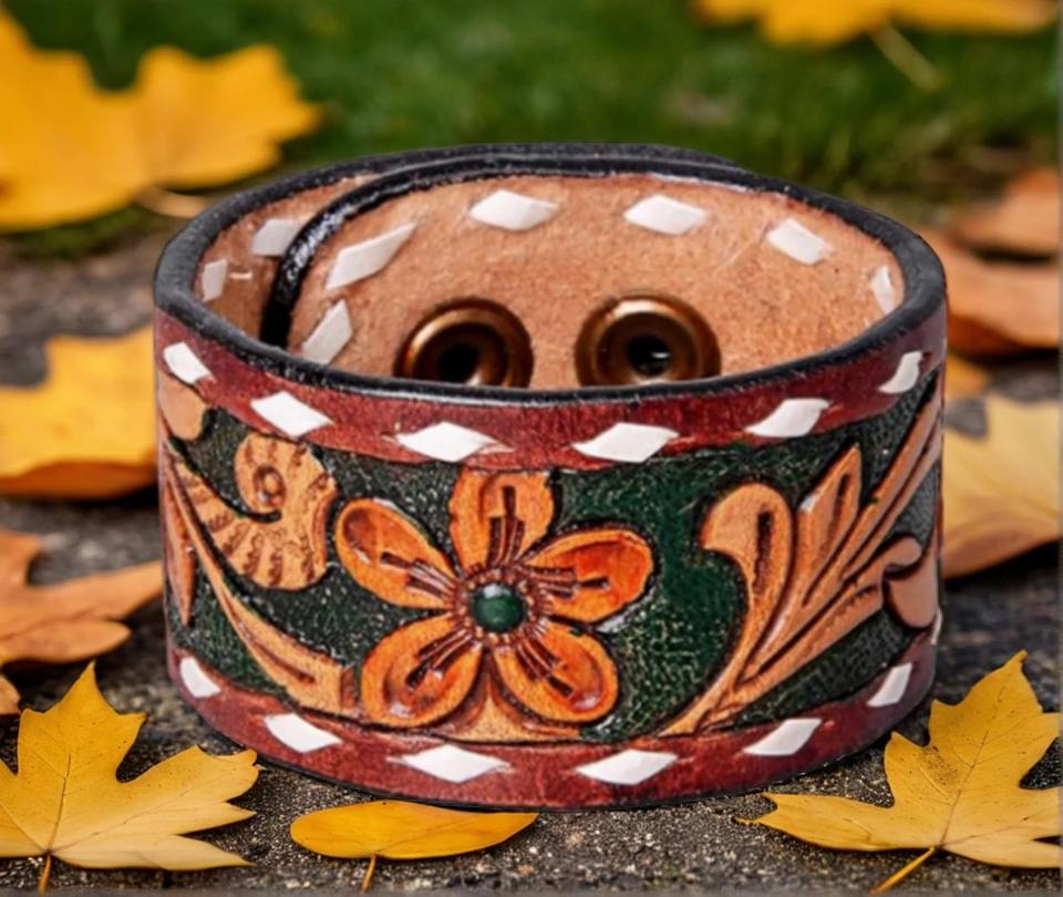 Premium Western Leather Cuff Bracelet Handmade and Hand-Painted Fashion Accessory Made in India