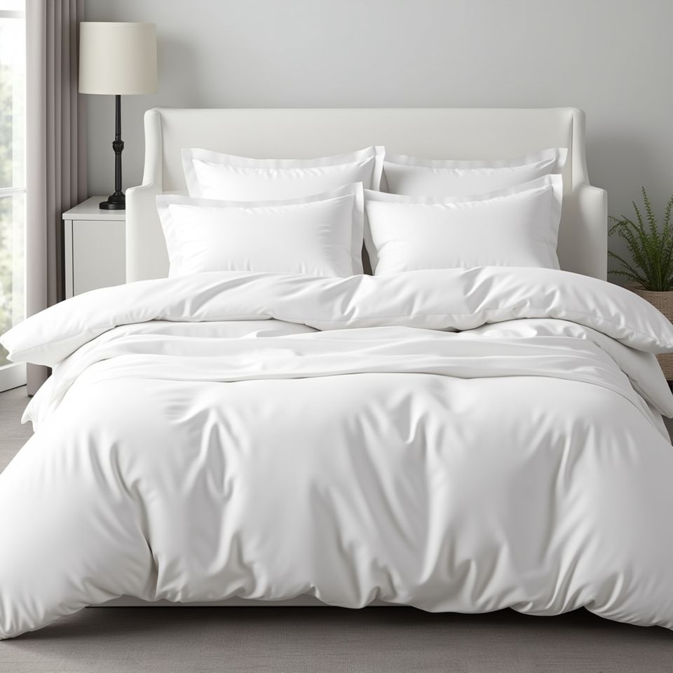 Elegant White 100% Cotton Sateen Sheet 210 X 280cm Breathable and Mercerized Flat Sheet With Signature Fitted & Flat Sheets