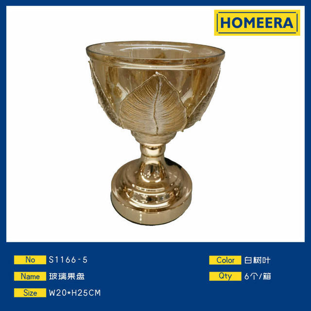 Bol à fruits élégant en verre au design de feuille blanche avec base en alliage Bol à salade créatif en bois et fer ACACIA W20xH25CM